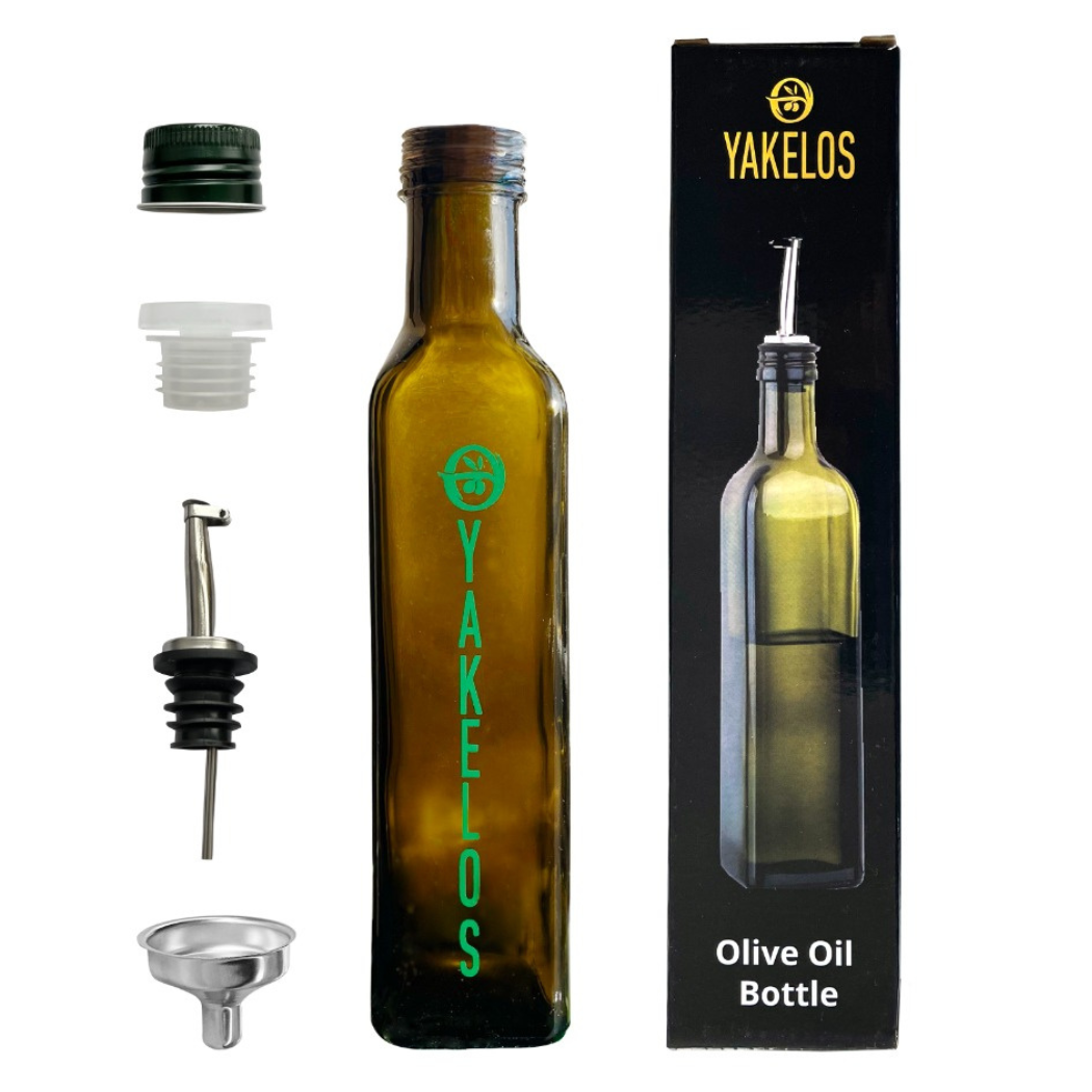 Ontdek het gemak van de Yakelos Olijfolie Fles! Deze essentiële keukentoevoeging is gemaakt van duurzaam glas en biedt een complete set met schenktuit, trechter en afsluitdop voor moeiteloos schenken en langdurige versheid. Perfect voor elke keuken, vaatwasserbestendig en ontworpen voor gemak en kwaliteit.